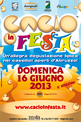 Domenica 16 giugno si rinnova l’appuntamento con CACIO IN FESTA,l’evento dedicato alla promozione delle aziende lattiero-casearie abruzzesi, organizzato da META Comunicazione & Pubblicità in collaborazione con ARA, Associazione Regionale Allevatori.