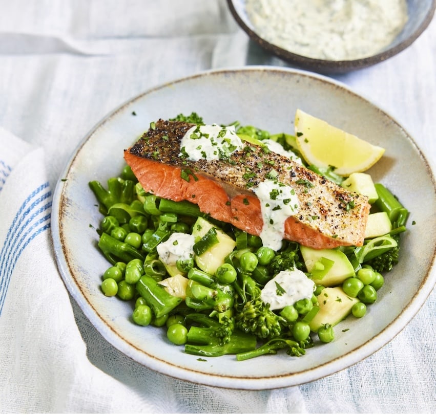- Salmone selvaggio alle erbe con kefir e verdure