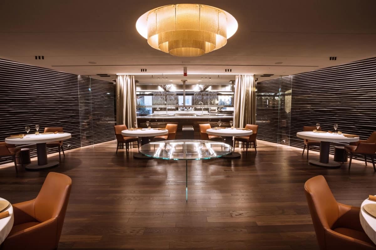 Sviluppato su 400 mq suddivisi tra sala, private dining, cantina, hall d’ingresso e cucina, conta 36 coperti, con otto tavoli disposti nella sala centrale, affacciati sulla cucina a vista.