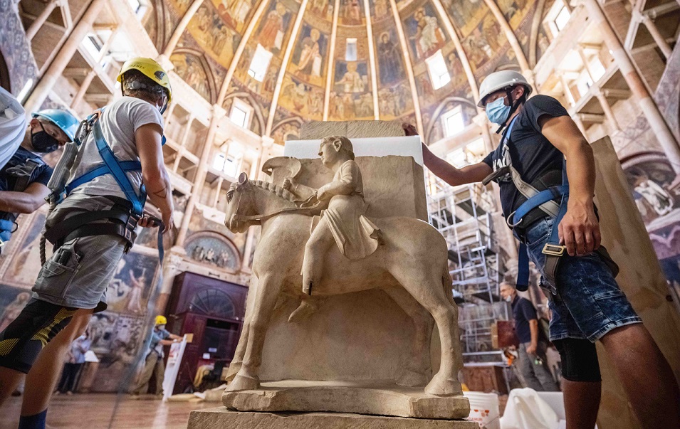 Un evento storico visto che le sculture – posizionate sul loggiato del Battistero a 7,5 metri d’altezza – sono state portate a terra e potranno essere ammirate da vicino dai visitatori grazie ad un’iniziativa della Diocesi in collaborazione con la Fabbriceria del Duomo, l’Ufficio diocesano beni culturali ecclesiastici e la Soprintendenza archeologia e belli arti di Parma e Piacenza con il contributo di Fondazione Cariparma, Fondazione Monte Parma, Comitato per Parma 2020 e Comune di Parma.