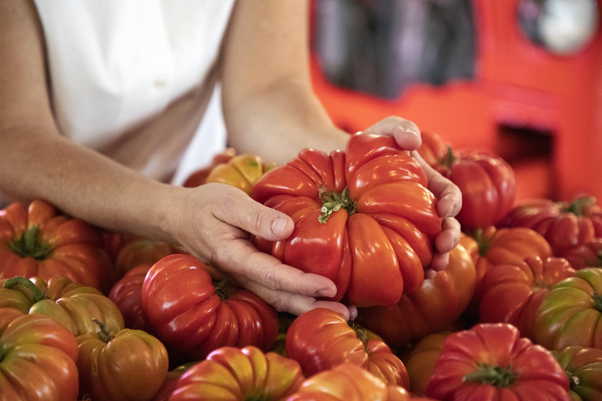 - Rosso, con solcature e “spalla” verde, più grosso rispetto alla maggior parte dei pomodori che si trovano in commercio, il Riccio di Parma è molto dolce, con una punta leggermente acidula.