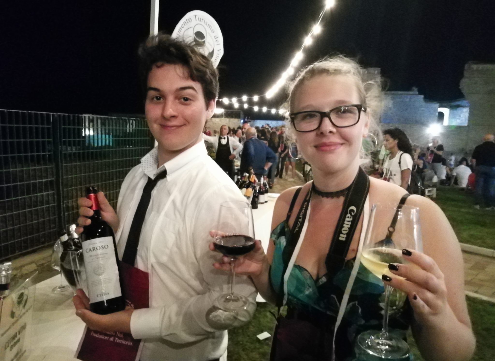Nella foto in alto, i giovanissimi, Pier e Selene, matricola al Dams di Bologna, mentre gustano il vino premiato: la foto è stata scattata ad Ortona, nel Castello Aragonese, durante la serata di Calici di Stelle 2019.