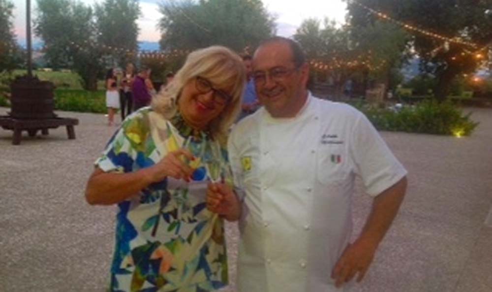 Lo chef Gabriele Marrangoni, nel verde che circonda questo antico casale in Via della selva a Mosciano Sant’Angelo, ha impiantato il suo grande orto che gli procura i prodotti migliori in freschezza e qualità. Tutto il suo staff è orgoglioso di queste crescite generose a portata di cucina e ne parla ancor prima di metterle sui taglieri, nella pastella per frittura, nelle ciotole da insalata, nelle padelle da cottura veloce. Zucchine, melanzane, pomodoro a pera, cipolle, basilico e patate viola, sono entrate anche nel menù ‘senza’ dedicato ieri sera all’Associazione Il Mondo delle intolleranze condotta da Tiziana Colombo.