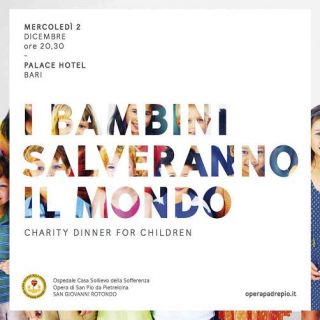 “Charity Dinner for Children” il prossimo 2 dicembre al Palace Hotel di Bari