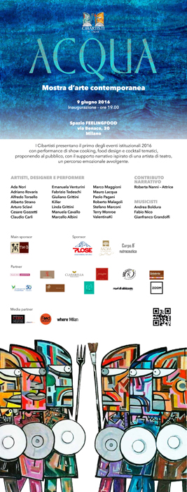 Sarà la mostra/evento ‘Acqua’ che si inaugurerà a Milano il 9 giugno, a tenere a battesimo le iniziative del 2016: una selezione di opere artistiche e installazioni che saranno esposte presso lo Spazio Feeling Food dove resteranno visibili dal 9 al 30 giugno.