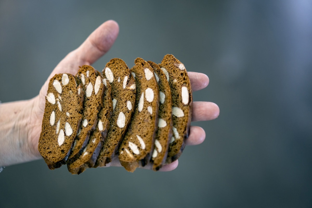 “Sono biscotti secchi che si ottengono impastando le mandorle e le spezie con il miele, lo zucchero e l’olio essenziale di arancio, aggiungendo la farina solo in un secondo momento”, racconta Massimo Arena, referente dei sei produttori che aderiscono al Presidio. Una volta ottenuti dei filoncini di circa 500 grammi, vengono infornati per 30-40 minuti: il giorno dopo si tagliano a mano a fette sottilissime, non più spesse di 4 millimetri, e si infornano in teglia per altre 12 ore a una temperatura di 60°. “Si tratta di un’asciugatura più che di una vera cottura”.