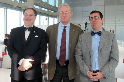 Confermato alla presidenza uno storico personaggio del vino bergamasco, Emanuele Medolago Albani, nella foto dii copertina con i critici enogastronomic, Paolo Massobrio e Marco Gatti.