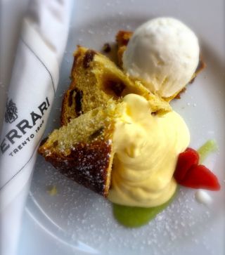 “I tre dessert offerti in carta – continua Dario Loison – rendono omaggio al Sud con il Babà, al Trentino con la torta de Fregoloti e a Milano col Panettone, e per tutte e tre le proposte è presente la contaminazione chiara e precisa del territorio trentino. L’omaggio a Milano è il dolce più gettonato, dove il Panettone Milano Loison è servito in purezza con accanto una salsa al Ferrari Maximum Demi-Sec, elegante e vellutata, e un gelato al Fior di latte, delicato e consistente al punto giusto”.