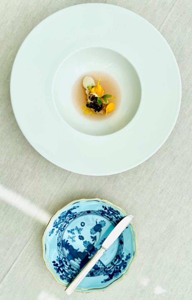 - Nella prima preparazione, firmata Marco Sacco e il suo staff, lo storione alla griglia viene servito con il cibo che solitamente conclude la grigliata: il marshmallow, sigillato con gelatina e sciroppo di zucchero, arricchito con le note esotiche del wasabi, dell’umeboshi e bilanciato con la dolcezza della pesca. La ricetta è frutto di un lavoro di squadra e intergenerazionale tra la brigata di Sacco. “Ogni anno, prima dell’apertura, ci riuniamo insieme per assaggiare e ragionare su ingredienti e ricette. Dalla contaminazione e dalle idee di tutti, nascono nuovi piatti” ha raccontato lo chef 2 stelle Michelin.