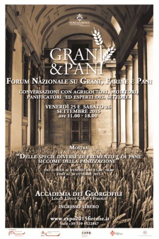 A corollario del forum, fino al 30 ottobre (dal lunedì al venerdì ore 15:00-18:00, ingresso gratuito) le sale dell’Accademia dei Georgofili condurranno i visitatori attraverso un percorso storico-documentale rappresentato nella mostra "Delle Specie diverse di frumento e di pane siccome della panizzazione", arricchito da un allestimento espositivo-didattico articolato in tre aree tematiche: Il Grano, con una selezione di campioni di antiche varietà coltivate in Toscana ed in Italia; La Farina, in cui saranno esposte differenti tipologie, modelli di mulini ed illustrazioni storiche; Il Pane con l’esposizione di differenti forme di panificazione toscana ed italiana. A conclusione del percorso una raccolta di proverbi e detti popolari sul tema.
