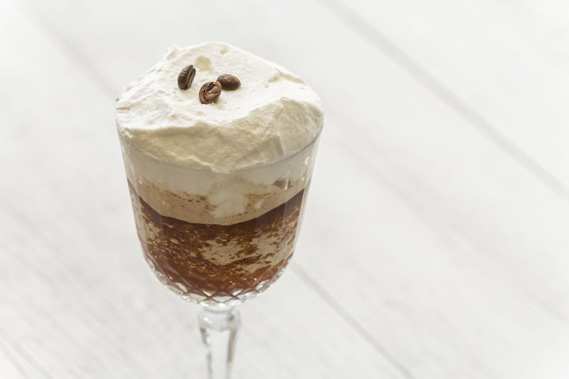 1. Versate con un mestolo la granita sul fondo del bicchiere e completate con la panna, aiutandovi con un cucchiaio di legno. Decorate con qualche chicco di caffè e gustatela subito.