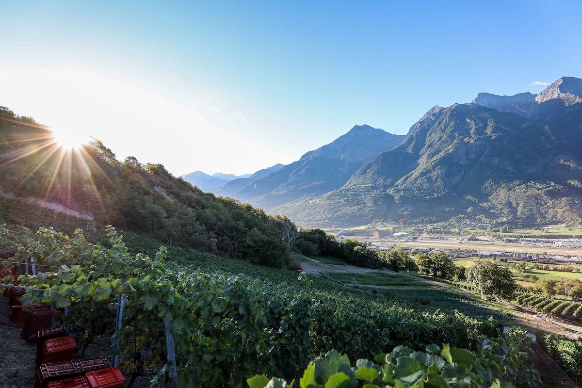 La viticoltura praticata in montagna è spesso definita “eroica” per le condizioni difficili in cui si trovano i vigneti. Situate ad altitudini che variano tra i 500 e i 900 metri sul livello del mare, le vigne della cantina valdostana spesso sorgono su terreni impervi e terrazzati, che richiedono un lavoro intenso e meticoloso. Le pendenze possono arrivare fino all’80% e le lavorazioni richiedono fino a 700-800 ore per ogni ettaro, contro le 150 medie di un vigneto italiano. Le tecniche tradizionali di lavorazione dei terreni assieme all’agricoltura di precisione, come l’irrigazione goccia a goccia, permettono di portare a maturazione grappoli sani e di primissima qualità.