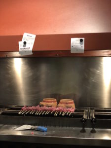 di lavoro. Accanto, più raccolta, la sala del caminetto e della rosticceria a vista, dedicata a Pescara, dove la brace della griglia a carbone sfrigola per cuocere i rinomati arrosticini abruzzesi.