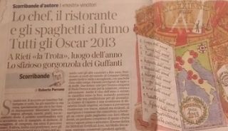 Come ogni anno, il critico de Il Corriere della Sera, Roberto Perrone, ha stilato la sua classifica degli Oscar della gastronomia 2013. Ecco, qui sotto, la pagina pubblicata sul quotidiano milanese il 28 dicembre 2013.
