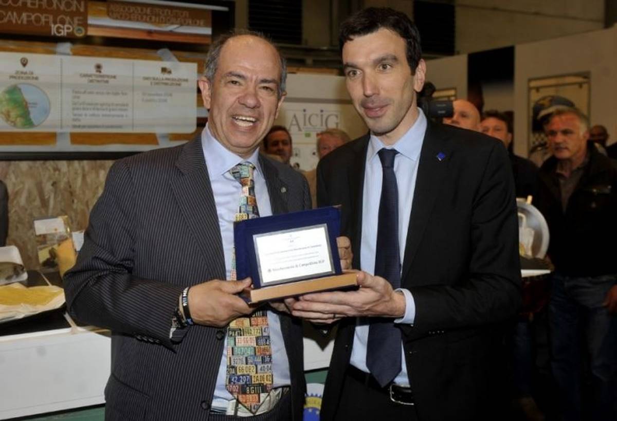 Vincenzo Spinosi mentre viene premiato dal Ministro Maurizio Martina a CiBus