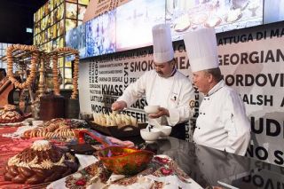 Nella cucina a vista del padiglione la degustazione gratuita delle ore 17 sarà dedicata interamente a questo gemellaggio. I due chef proporranno un piatto speciale a base di pesce che unirà elementi della cucina italiana e russa: una crema di burrata con peperoni fiammati alla Vodka e calamarata ripiena di pane nero, acciuga e limone.