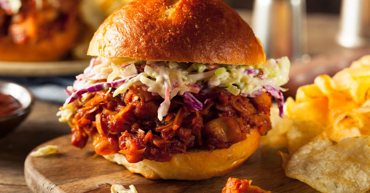 • Aggiungere salsa barbecue, lasciare ancora in forno per un quarto d’ora e poi farcire i panini, aggiungendo salsa coleslaw e volendo cavolo cappuccio stufato.