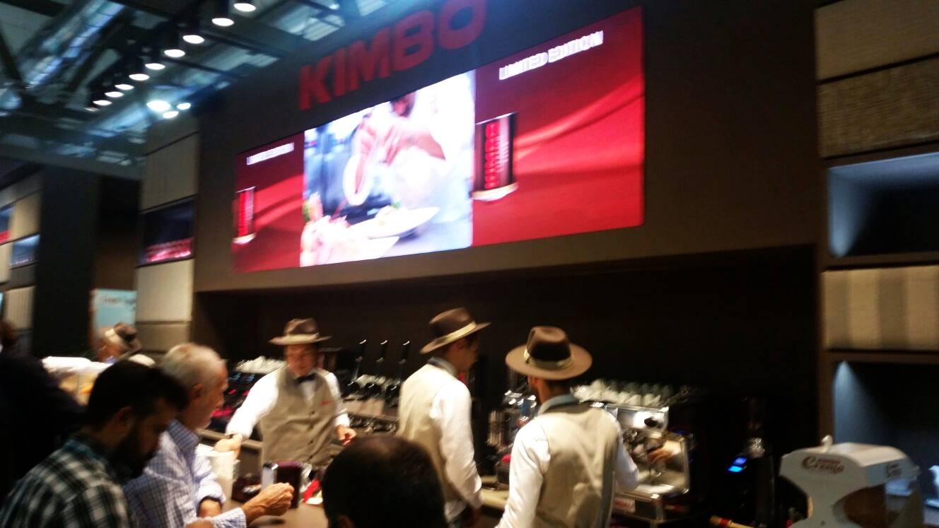 La storia di Kimbo e dei suoi nuovi prodotti ci viene raccontata da Giovanni Romano, direttore commerciale Kimbo, nella giornata di apertura della 40° edizione di Host, all'interno dello scenografico e accogliente stand Kimbo, dominato dai toni e dai colori caldi del caffè, scelti per i rivestimenti e per gli arredi.