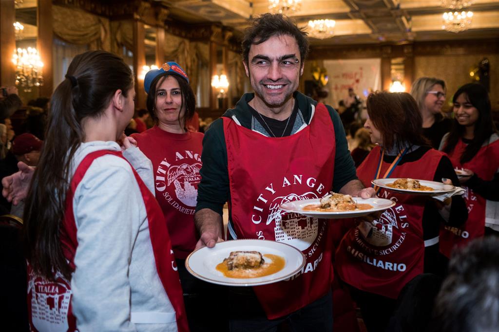 A Milano 200 persone servite a tavola da personaggi dello spettacolo, istituzioni e studenti. Il pranzo verrà preparato da Christian Garcia, chef personale del principe Alberto di Monaco