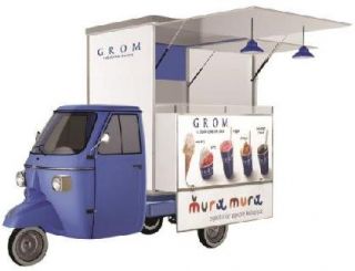 VS- Veicoli Speciali presenta al Sigep (Rimini Fiera 18-22 gennaio 2014) in anteprima una novità eco-friendly: un mezzo elettrico a propulsione, allestito come una piccola gelateria ambulante, dotato di ottime capacità di carico ma al tempo stesso maneggevole, versatile e dal design originale. Sempre al Sigep potrete vedere e provare un veicolo-gelateria low cost pensato e realizzato per le start-up e per venire incontro alle esigenze di chi voglia intraprendere un’attività senza disporre di grandi budget.
