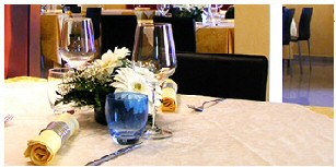 I tavoli sono distanziati e la “mise en place” è molto curata con tovaglie, tovaglioli e posate di estrema eleganza.