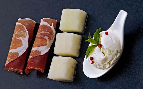 Accompagnate questo gelato con prosciutto di parma (essiccato a bassa temperatura al profumo di rosmarino), pane all’olio extra vergine di oliva e guarnire con peperoncino secco surgelato.