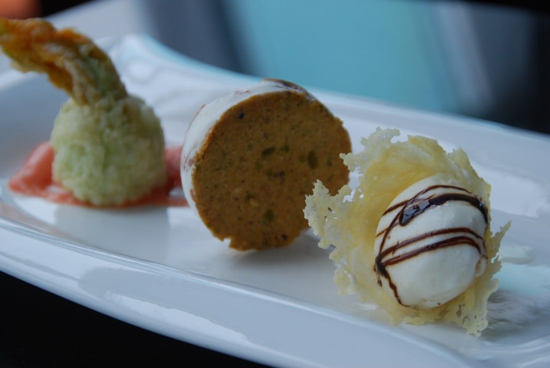Cialda al Parmigiano Reggiano, Biscotto al Pistacchio e Prosciutto di Parma croccante