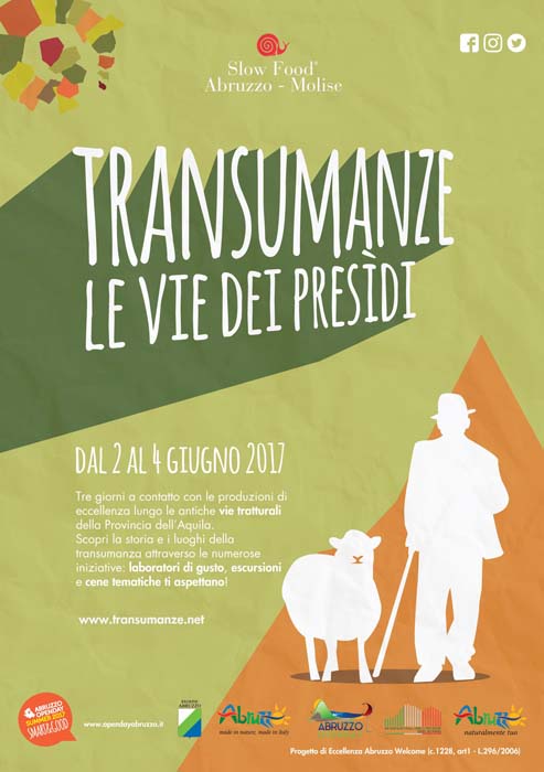 Dal 2 al 4 giugno, Slow Food Abruzzo con la DMC Gran Sasso d’Italia, L’Aquila e Terre Vestine, nell’ambito di Open Day Summer progetto della Regione Abruzzo, organizza Transumanze – Le vie dei Presìdi. Un modo per esaltare da un lato la bellezza del paesaggio Aquilano, soprattutto riscoprendo le antiche vie tratturali che collegavano l’Abruzzo, al Molise e alla Puglia, percorse nei secoli da migliaia di greggi costellate di chiese rupestri, castelli, piane meravigliose, e dall’altro per scoprire la grande ricchezza di biodiversità di questa parte d’Abruzzo, attraverso le produzioni tipiche e i Presìdi Slow Food, nati proprio per tutelare i piccoli produttori e salvare i prodotti artigianali di qualità.