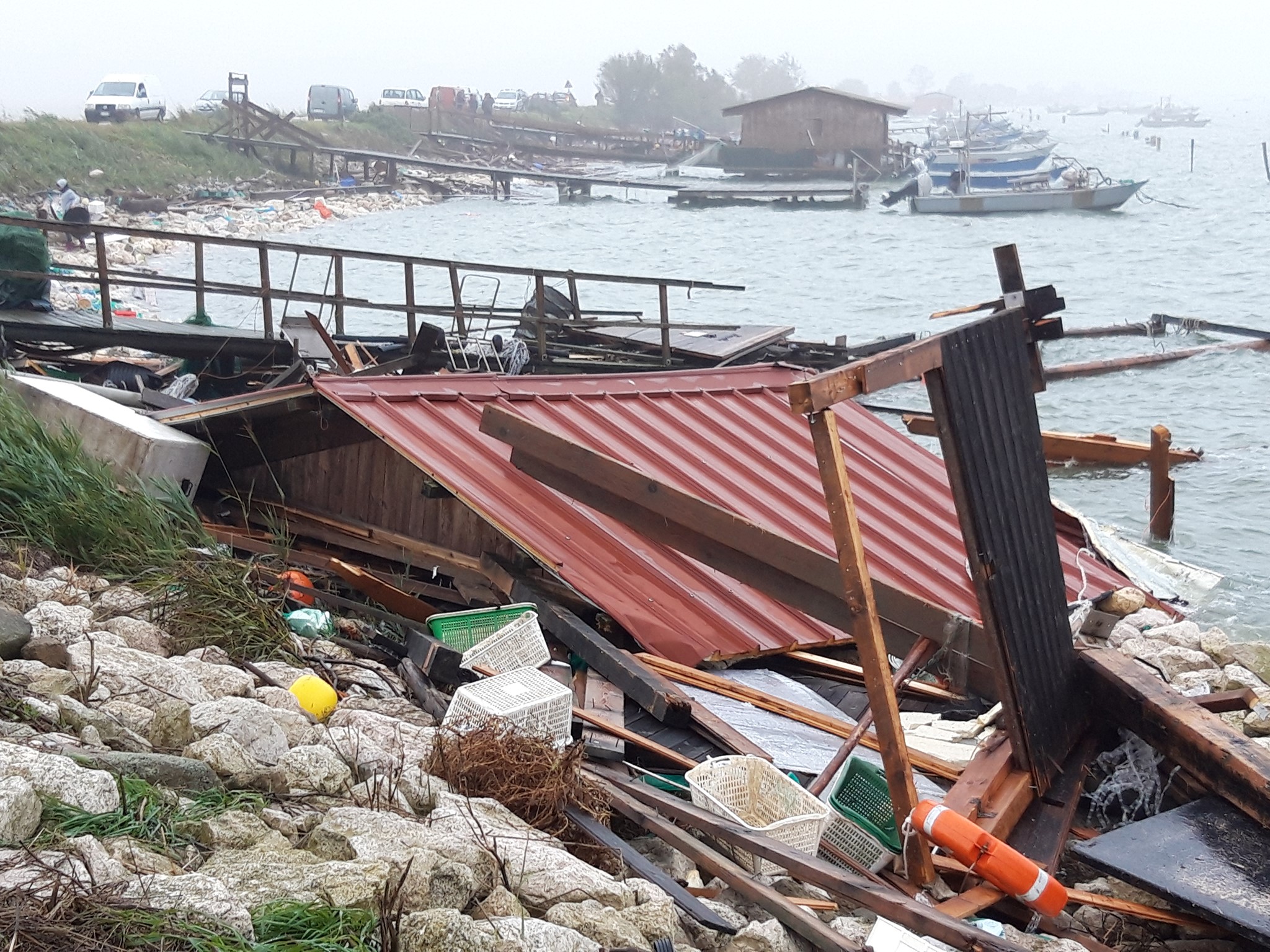 In Sacca degli Scardovari e Barricata, nei pressi del comune di Porto Tolle (RO) un vento fortissimo e un intensa pioggia hanno spazzato via circa una settantina di cavane di pescatori e disperso numerose barche. Sul posto, fin dalla notte, il sindaco Roberto Pizzoli, e i suoi assessori, a monitorare l’area la Polizia Locale con la Protezione Civile.