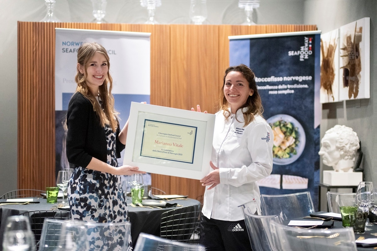Marianna Vitale è la nuova Ambasciatrice dello stoccafisso norvegese, titolo che dal 2008 viene assegnato ogni anno dal Norwegian Seafood Council a uno chef italiano impegnato a usare questo ingrediente nella propria cucina.