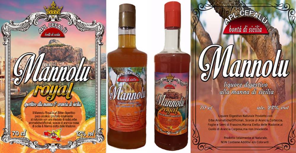 Il MANNOLU originario, nato nel 2017 è un liquore digestivo medicamentoso prodotto artigianalmente con una miscela di erbe aromatiche/officinali,radici,arance, corteccia,foglie, semi di frassino e manna naturale, pura ed originale, ricavata dall'incisione degli alberi di frassino nella zona di Pollina/Castelbuono (Manna eletta delle Madonie) in Provincia di Palermo; alla Manna vengono attribuite eccezionali qualità salutari come anche delle caratteristiche digestive, dolcificanti e regolatorie per l'intestino. I componenti vegetali della miscela di erbe benefiche e salutari con la sua gradazione alcolica al 23% Vol. oppure 28% Vol. racchiudono nel liquore digestivo tutti i principi attivi delle erbe e gli conferiscono un gusto armonico, gentile ed aromatico dal colore leggermente ambrato, simbolo di genuinità e fragranza al gusto di arancia corposa, ma non invadente, il quale se bevuto leggermente freddo esalta ulteriormente i preziosi sapori delle erbe che lo compongono e fa di sè un eccellente e genuino elisir con elevate proprietà vegetali organolettiche benefiche per la digestione.