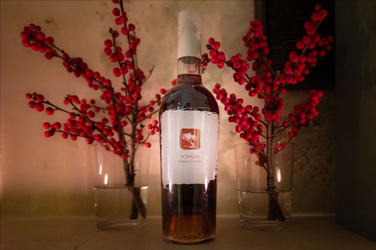 Egnazia Vermouth Rosso è stato realizzato partendo da un vino Verdeca IGP Puglia, vendemmiato in Valle D’Itria nel 2018 e impreziosito con erbe e spezie