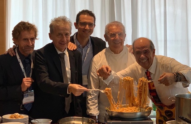 A firmare le fettuccine rosse Vincenzo Spinosi e suo figlio Marco, celebri mastri pastai, fautori del rilancio dei Maccheroncini di Campofilone (dal 2013 prodotto Igp), in collaborazione con il professor Fabrizio Angelini, presidente della SINSEB (Società Italiana Nutrizione, Sport e Benessere), specialista in endocrinologia e responsabile nutrizionale per la Juventus, l’Empoli e per la Vr 46 Accademy team di Valentino Rossi. All’insegna di un buon connubio scientifico-imprenditoriale.