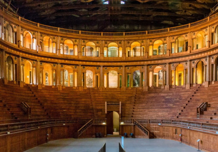 Lo splendido teatro ligneo fu realizzato per i Farnese nel 1619 in uno stile a cavallo tra rigore rinascimentale e fasti barocchi. In buona parte distrutto dalle bombe del 1944, venne poi fedelmente ricostruito e oggi rappresenta una straordinaria architettura teatrale, che incarna al massimo grado i criteri di assegnazione delle stelle “verdi” Michelin. Sontuosa porta d’ingresso alle ricche collezioni del Palazzo della Pilotta, la sala incanta per la bellezza dei suoi arredi, la sua grandiosità e la sua unicità. Dalla prima – magnifica – impressione, alla buona gestione dell’accoglienza e della visita, il Teatro Farnese merita appieno le tre stelle Michelin.