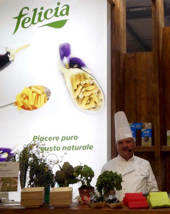 Il connubio tra lo chef Peppe Zullo e pasta di legumi Felicia, martedì 7 maggio si è presentato come un successo annunciato. Lui, “il cuoco contadino” come lo ha definito Carlo Petrini, è uno dei migliori ambasciatori dell’eccellenza pugliese nel mondo, e lo ha detto anche Oscar Farinetti che ha colto la sua particolare indole nella cura della qualità delle materie prime all’insegna dei valori più autentici della tradizione mediterranea tanto da sceglierlo per l'Expo, dove Peppe si è esibito nei ristoranti di Etaly per un intero mese durante l'Esposizione Universale del 2015.
