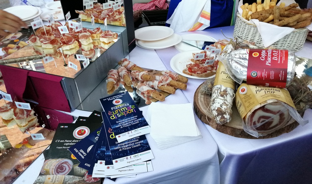 Ad accompagnare i salumi tipici piacentini saranno infatti i grandi prodotti a Indicazione Geografica, grazie alla presenza di numerosi Consorzi di tutela: Grana Padano Dop, Mortadella Bologna Igp, Salame Cacciatore Dop, Piadina Romagnola Igp, Prosciutto di Parma Dop; Pesca Nettarina di Romagna Igp, Aceto Balsamico Tradizionale di Reggio Emilia Dop, Prosciutto di Modena Dop; Aceto Balsamico Tradizionale di Modena Dop, Aceto Balsamico di Modena Igp, Patata di Bologna Dop, Parmigiano Reggiano e Enoteca Regione Emilia Romagna.