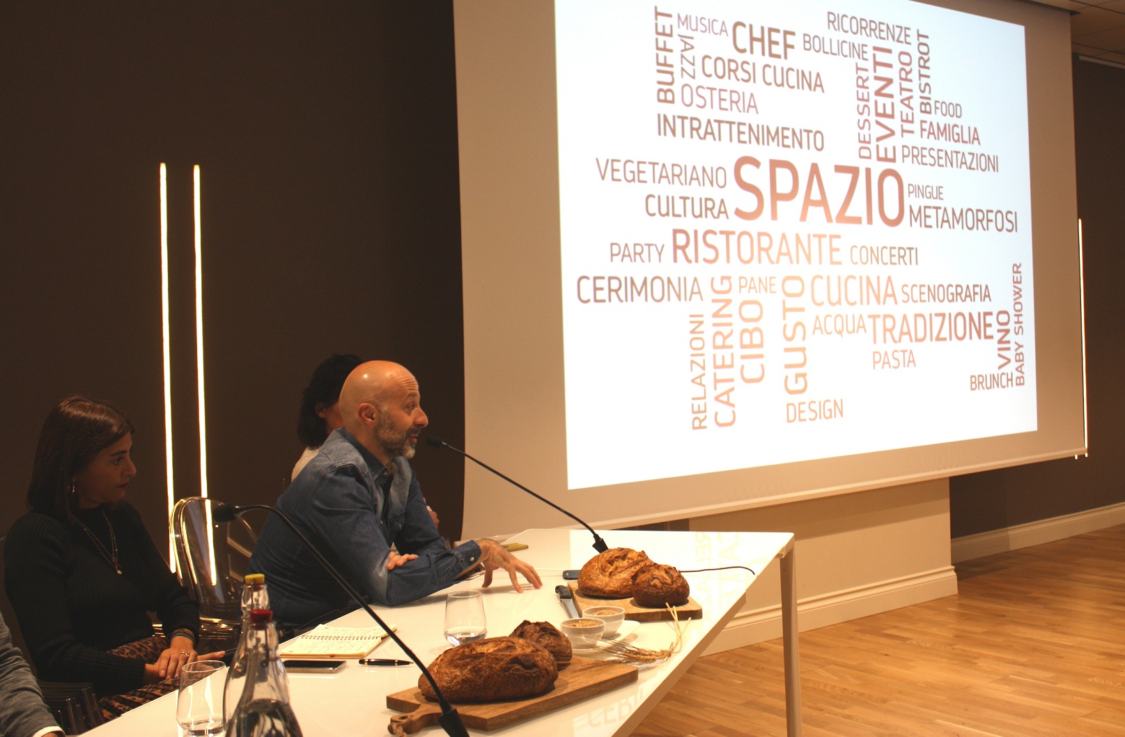 Prima di parlare del pane, che è stato il protagonista assoluto della mattinata, il cuoco ha ripercorso la sua storia famigliare e professionale che in meno di 20 anni, in tempi record, lo ha portato ai vertici della gastronomia internazionale.