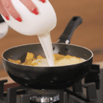Infine, quando il pollo è cotto e succoso, aggiungete il latte di cocco.