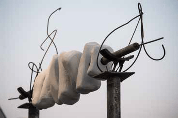 È una struttura metallica alta 4 metri, deformata dalle fiamme e dal calore durante l’incendio. La sua identità originaria ha ceduto ai volumi la memoria funzionale: rimane a testimoniare ora la riconciliazione del luogo. Segno forte nello spazio circostante, aggiunge al ricordo un monito e una riflessione. (Fabrizio Caramagna)