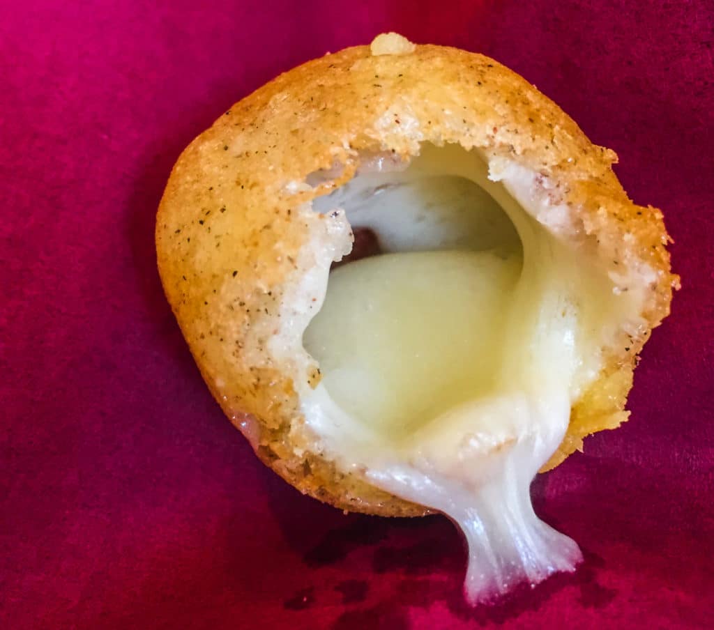 Con l’aiuto di un cucchiaio raccogliere un cubetto di formaggio per volta, badando che sia ben ricoperto di pastella e lasciarlo cadere nell’olio bollente