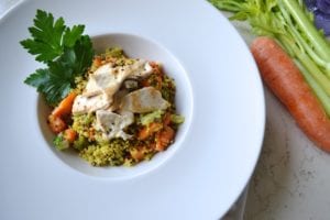 Quinoa con straccetti di pollo e verdure croccanti