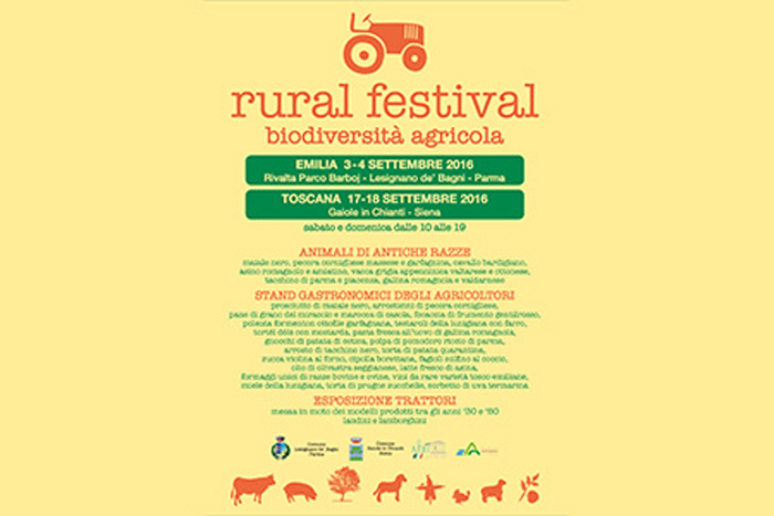 Ed è in questo il luogo che il weekend del 3 e 4 settembre 2016 Rivalta di Lesignano De' Bagni (Parma), sulle prime colline tra Langhirano e Traversetolo, ospiterà per il terzo anno un nuovo viaggio alla scoperta del patrimonio rurale della zona. L'idea del Rural Festival nasce dall'impegno da parte di agricoltori e allevatori della zona di far conoscere e assaggiare i propri prodotti.