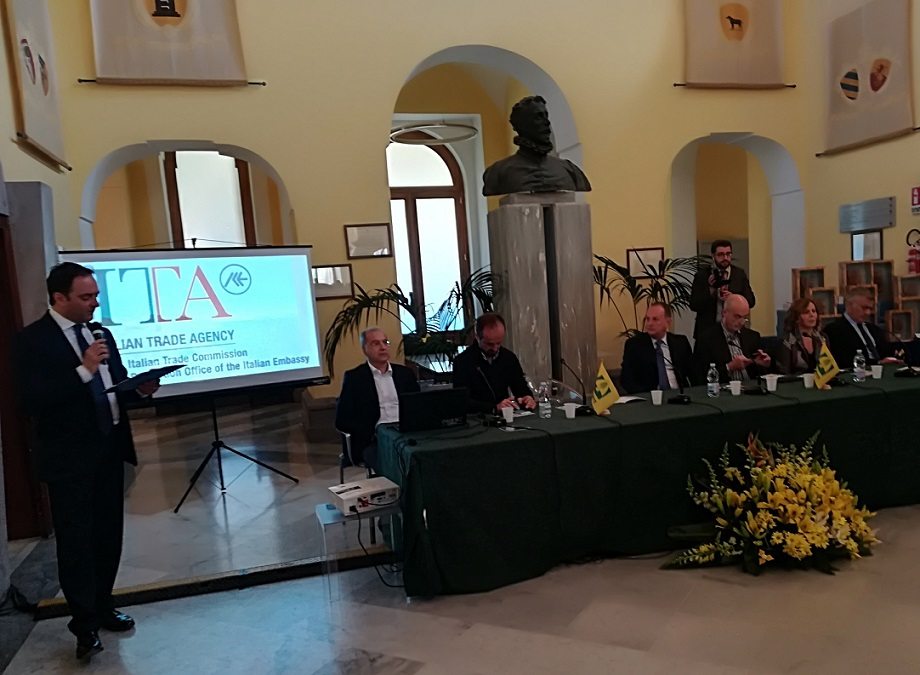 Sorrento 7 aprile 2018. E’ la Dop Colline Pontine dell’azienda Biancheri di Priverno, in provincia di Latina, l’olio vincitore del Premio Speciale della Stampa assegnato questa mattina a Sorrento, nell’ambito della cerimonia di premiazione della sedicesima edizione del Sirena d’Oro, il concorso riservato agli oli Dop, Igp e Bio patrocinato dal Ministero delle Politiche Agricole Alimentari e Forestali e promosso dal Comune di Sorrento, in collaborazione con Coldiretti Campania, e la partecipazione delle associazioni Oleum, Aprol Campania, Unaprol, Gal Terra Protetta e Federdop Olio.