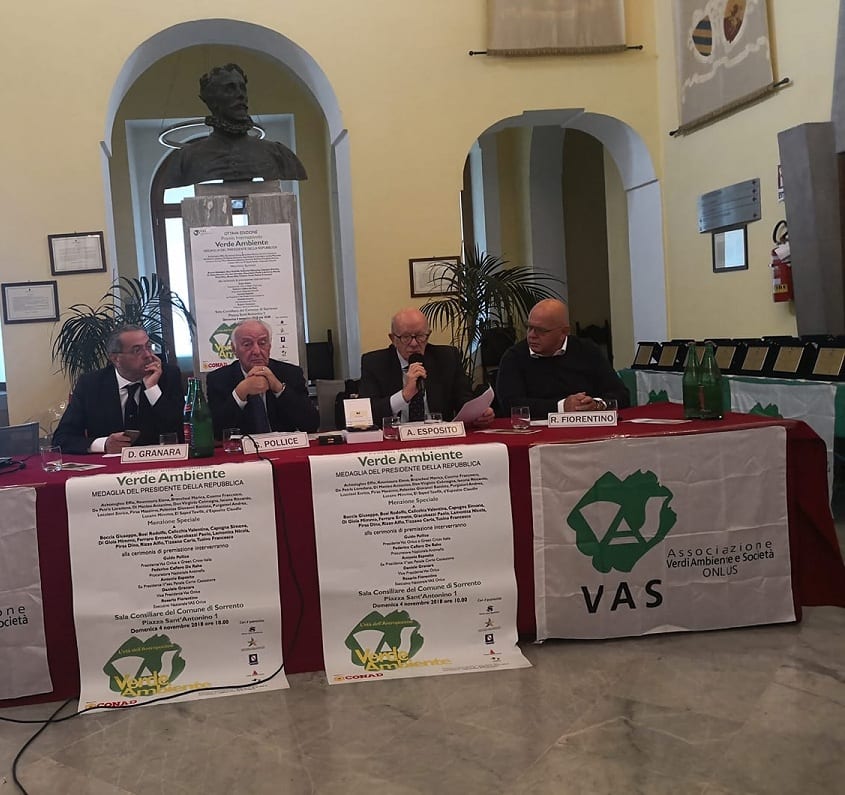 Si è concluso a Sorrento nel segno del successo, superando ogni aspettativa di presenze, il “Premio Internazionale di Ecologia Verde Ambiente 2018”, organizzato dalla storica Associazione ambientalista VAS –Verdi Ambiente e Società onlus, guidata da Guido Pollice.