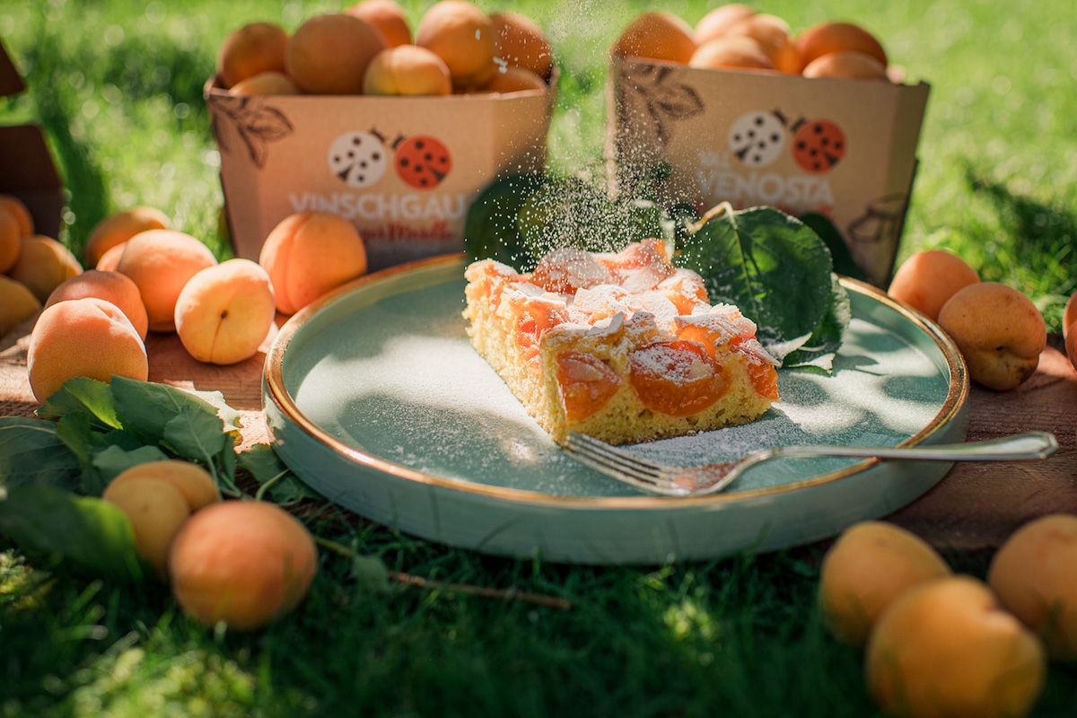 Una torta da forno semplice, pensata per valorizzare la frutta estiva. Questa torta con albicocche fresche e mandorle abbina la dolcezza delle mandorle al profilo aromatico delle albicocche della Val Venosta, una varietà nota per l’equilibrio tra zuccheri e acidità.