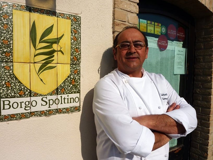 Gabriele Marrangoni Chef fu tra i primi a comprendere che la professione di cuoco può avere un grande valore nello stimolare i fornitori locali a una produzione virtuosa che esalta la biodiversità e promuove la tradizione del territorio. Sostenere questi valori, per lui ha sempre significato anche andare oltre i confini: nel 2010 con la collaborazione con il Dipartimento di Scienze degli Alimenti dell’Università di Teramo, tenne una serie di lezioni nell’ateneo brasiliano di Florianopolis, iniziando da quel giorno scambi culturali, musicali e culinari con quelle comunità sudamericane. In particolare con la Facoltà di Gastronomia Unifil di Londrina, in Brasile, i cui studenti sono ospiti ogni anno a Borgo Spoltino per un tour enogastronomici che unisce due culture del cibo così distanti, ma così amiche. Per la sua grande sensibilità nella divulgazione della cultura enogastronomica del territorio abruzzese anche all’estero, nel 2015 Gabriele Marrangoni è stato insignito della fascia dell’Ordine dei Cavalieri dei maccheroni alla chitarra a febbraio e, nello stesso anno in autunno, Borgo Spoltino ha ricevuto la sua prima chiocciola Slow Food.