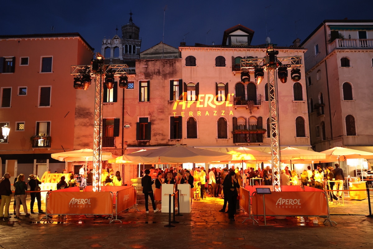 A Venezia ha inaugurato ufficialmente Terrazza Aperol, nuovo locale dello storico brand di Gruppo Campari. I pannelli arancioni che da tempo attiravano l’attenzione dei veneziani e dei turisti hanno finalmente svelato la grande novità. Il locale – aperto al pubblico da venerdì 31 agosto – si trova in un palazzo storico di Campo Santo Stefano, a due passi dal ponte dell’Accademia, in una zona di grande passaggio turistico ma rimasta autentica e popolata da veneziani, ed è un segnale di rinascita che Aperol vuole mandare alla città e non solo.