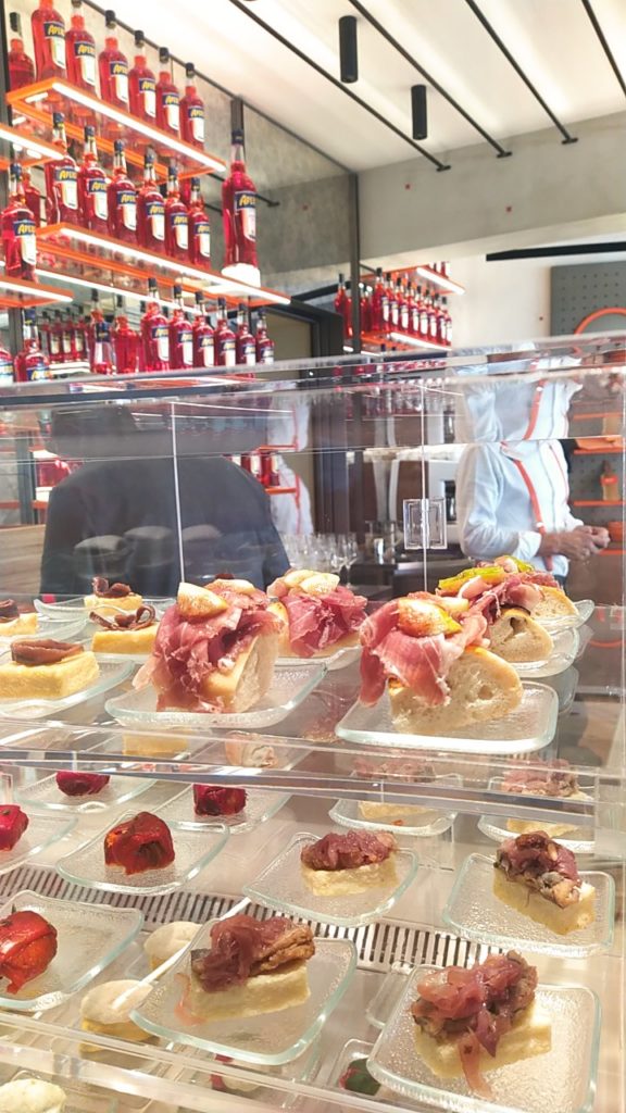 La firma della proposta food che animerà il locale è di livello. Il menu di Terrazza Aperol è stato creato infatti da Alessandro Negrini e Fabio Pisani, chef de “Il Luogo di Aimo e Nadia”. La lista, pensata appositamente per il nuovo locale, si basa sulla tradizione veneziana. È possibile quindi vivere l’esperienza di un bacaro veneziano gustando un Aperol Spritz accompagnato da una serie di cicchetti gourmet così come pranzare o cenare con una serie di piatti realizzati con materie prime italiane, che sposano sempre la stagionalità.