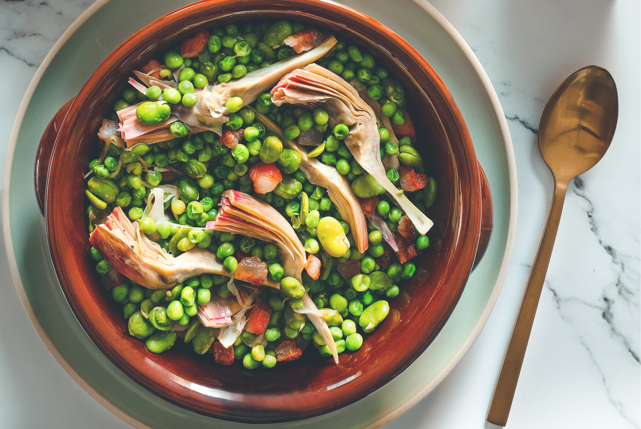 Piselli, fave, carciofi e guanciale: tutto il gusto della primavera in un piatto di origine romana