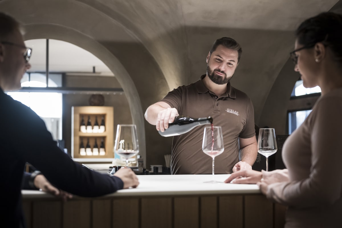Wine lover e turisti hanno la possibilità di immergersi nel mondo di Girlan, con un’esperienza a 360° che parte dai vigneti per arrivare nel calice. L’antica scala, restaurata e ripristinata, che connette il punto vendita – caratterizzato dalle suggestive volte a botte – all’antro più profondo dell’antica cantina, non è soltanto un passaggio architettonicamente ammaliante e che da sempre cattura l’attenzione dei visitatori, ma per certi versi rappresenta una metafora emblematica della connessione che intercorre tra antico e moderno, tra passato e futuro, tra tradizione e innovazione.